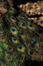 Keywords: peacock feather pattern tail colorful plumage exotic turquoise bird vibrant