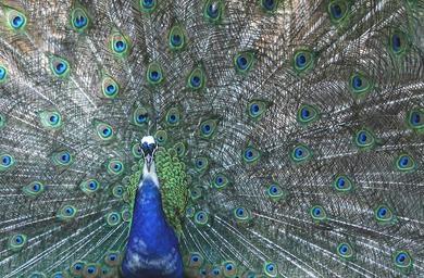 Keywords: peacock four spot feather bird colorful color iridescent peacock feathers structure bird feather bright blue background pride animal