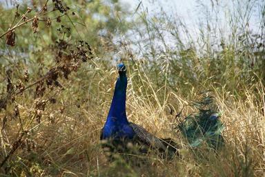 Keywords: peacock male in the grass blue bird peacock korunkatý feather