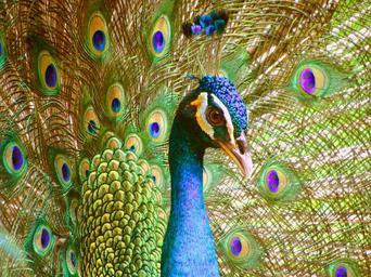 Keywords: peacock peacock's tail zoological garden feathers bluebird birds