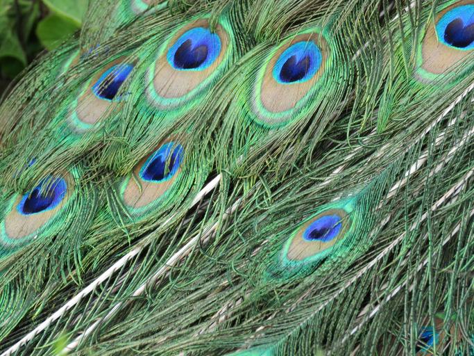 Keywords: peacock peafowl feathers bird tail plumage colorful