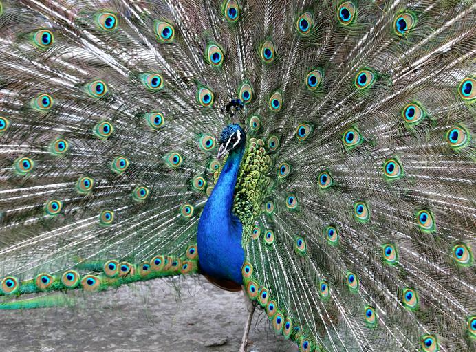 Keywords: peacock tail male peacock's tail feathers bluebird beauty the groom fan brag zoological garden birds