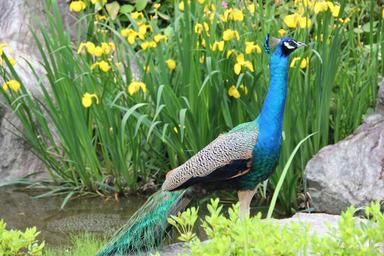 Keywords: peafowl indian peafowl blue peafowl peacock bird feather nature green tail colorful blue indian asia posing garden park zoo