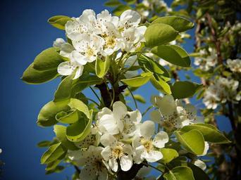 Keywords: pear blossom fruit flowers white green leaves pistils field peral flower tree