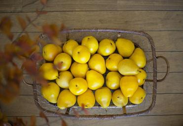 Keywords: pear pears basket wood table spring fruit cooking kitchen food