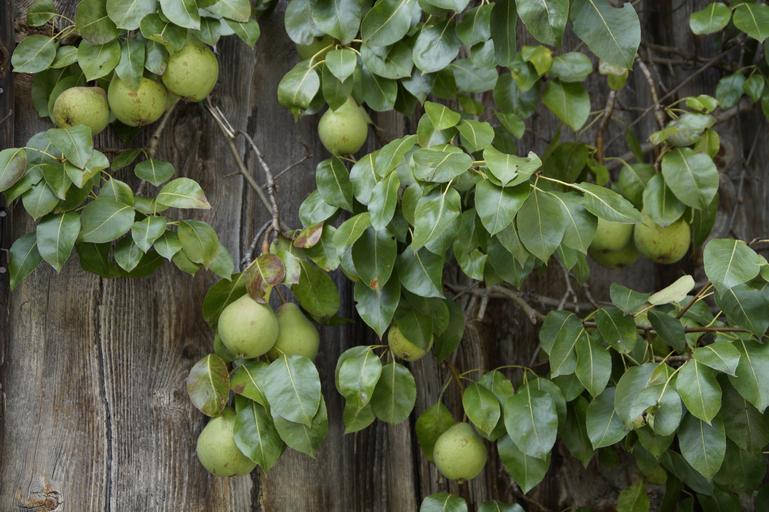 Keywords: pear pears wooden wall farmhouse fruit fruits summer immature delicious vitamins healthy nutrition grow tree green