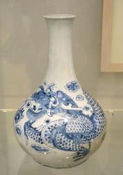 | Keywords: Pear-shaped wine bottle with a dragon amidst clouds, Korea, Joseon, 19th century AD, porcelain with underglaze blue - Östasiatiska museet, Stockholm - DSC09437.JPG en Exhibit in the Östasiatiska museet Stockholm Sweden This artwork is old enough so that it is in the public domain Photography was permitted in the museum without restriction 2014-09-13 06 24 53 own Daderot other versions cc-zero Ceramics of the Joseon Dynasty in Östasiatiska museet Uploaded with UploadWizard | ||||