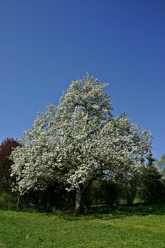 Keywords: pear tree plant nature meadow orchard fruit tree meadow scattered fruit trees blossom bloom bloom blossom pear blossom fruit tree blossom spring baden württemberg germany white sky blue landscape pyrus pome fruit