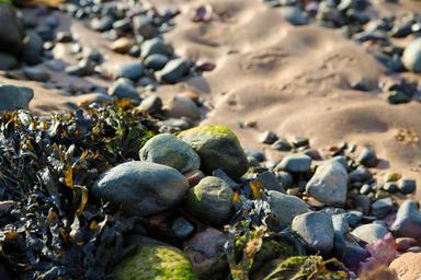 Keywords: pebbles seaweed beach sand holiday share coast ocean nature kelp coastline