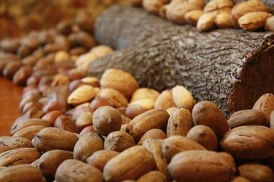 Keywords: Pecans, hazelnuts, walnuts, almonds, Brazil nuts on a table with logs 6.jpg en pecans hazelnuts walnuts almonds Brazil nuts on a table with logs 2016-12-22 16 03 41 own Baileynorwood other versions cc-zero Nuts