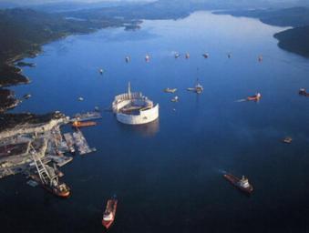 Keywords: Pecon1.jpg Picture of the building of Ekofisk wall in Vikebygd Norway in 1988/89 Own picture 2006-05-04 own assumed Aloba Vindafjord Petroleum production of Norway Fjords of Hordaland Ekofisk