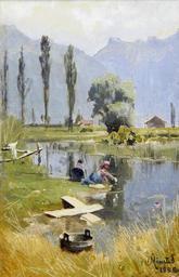 | Keywords: Peder Mønsted - Laundry day.jpg Artwork Creator Peder Mønsted 1899 Oil on canvas cm 24 5 16 5 object history credit line P Mönsted 1899 ~ lower right signature and date accession number http //www bonhams com/auctions/19782/lot/226/ Bonhams PD-old-auto-1923 1941 Peder Mønsted 1890s landscape paintings Paintings of landscapes with washerwomen Images from Bonhams |