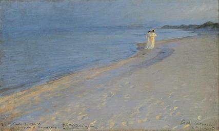 | Keywords: Peder Severin Krøyer - Summer evening at the South Beach, Skagen. Anna Acher and Marie Krøyer - Google Art Project (TQFsU4zCe rZTA).jpg commons artist commons date commons medium commons dimensions commons institution commons location commons references commons object_history commons exhibition_history commons credit_line commons inscriptions commons notes commons accession_number commons source commons permission commons other_versions commons zoom core title en Summer evening at the South Beach Skagen Anna Acher and Marie Krøyer core creator Peder Severin Krøyer core date dateCreated 1893 core format w45 8 x h27 8 cm core type Painting art artist_date 1851-07-23/1909-11-21 art artist_death_place Skagen art artist_nationality Danish art artist_birth_place Stavanger google display_date 1893 google is_gigapixel FALSE google is_secured TRUE google street_view_asset/id lwEgERUyFH0hqg google street_view_level/id 11879728161999947185 google street_view_location 55 689926147460938 12 577588081359863 1 0900000333786011 1VQw2hqD_u5DkArzyABjcA google partner/id 0000000001854db2 google is_artproject TRUE google picasa_token dbRT06RHGLBg7X4DjemdVUl5qKw special url_id TQFsU4zCe_rZTA google partner/name The Hirschsprung Collection special partner/name_no_lang The Hirschsprung Collection PD-old-100-1923 1909 Google Art Project works by Peder Severin Krøyer Summer evening at the South beach of Skagen by Peder Severin Krøyer |