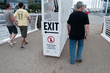 | Keywords: auckland new zealand newzealand outdoor A sign reads "EXIT" with an arrow pointing left and another reads "LIQUOR BAN AREA 7 DAYS A WEEK 24 HOURS A DAY". A sign reads "EXIT" with an arrow pointing left and another reads "LIQUOR BAN AREA 7 DAYS A WEEK 24 HOURS A DAY". |
