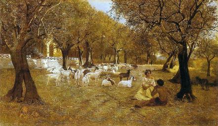 | Keywords: Pedro Weingärtner - Daphnis e Cloé.jpg Artwork Creator Pedro Weingärtner Daphnis e Cloé 1891 technique oil canvas cm 42 42 5 Institution Museu de Arte do Rio Grande do Sul Ado Malagoli Transferência da Biblioteca Pública do Estado do Rio Grande do Sul Scan from MARGS/Safra catalogue Other versions <table style background-color EEEFFF > <tr> <td> 500x120px none none span </td> <td valign top > File Weingartner-daph jpg<br />Version by Tetraktys</td> </tr> </table> PD-old-auto 1929 Paintings by Pedro Weingärtner 1891 paintings 1890s paintings from Brazil Paintings in the Museu de Arte do Rio Grande do Sul |