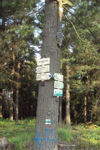 Keywords: Pekařův kříž.JPG cs Rozcestník pod Pekařovým křížem mezi Rynolticemi a Hrádkem nad Nisou okres Liberec own Zákupák 2013-08-31 Hiking and footpath fingerposts in Liberec District Lusatian Mountains