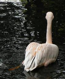 Keywords: Pelecanus onocrotalus back swiming.jpg Pelecanus onocrotalus in the zoo of hamburg germany Own 2007-08 LadyofHats LadyofHats Pelecanus onocrotalus captive swimming Birds at Tierpark Hagenbeck