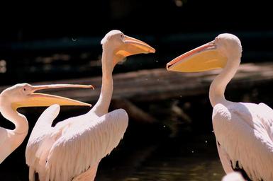 Keywords: pelican birds three white water