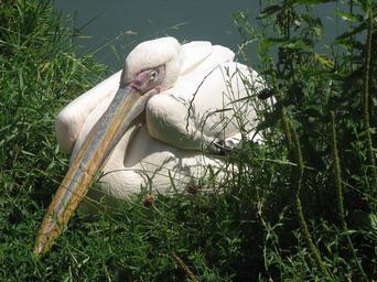 Keywords: Pelican crouching.jpg en A Great White Pelican crouching own Tamar Assaf Pelecanus onocrotalus captive