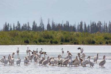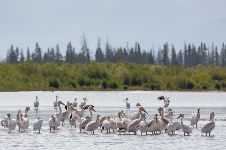 Keywords: outdoor Pelicans in the southeast arm of Yellowstone Lake; Neal Herbert; August 2014; Catalog #19623d; Original #4927 Pelicans in the southeast arm of Yellowstone Lake; Neal Herbert; August 2014; Catalog #19623d; Original #4927