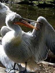 Keywords: pelicans pelecanidae bird plumage spring care bill rattle orange white water water bird hoary feather