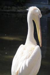 Keywords: pelikan white bird water bird move rear view head bill beautiful