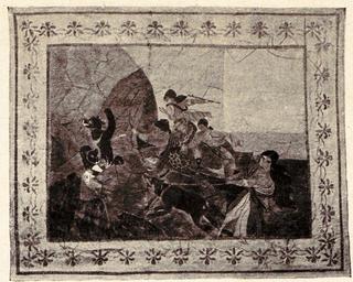 | Keywords: Pelz Mosaik Goldschmiedt.jpg Fur carpet from Vienna Austria Amazonenjagd Wandteppich von A GOLDSCHMIEDT Wien einem der Begründer und Künstler der modernen Mosaik Grösse 4 m Breite; 2 1/2 m Höhe sic Das Hauptmaterial ist niederes teilweise bunt gefärbtes Lammfell Die Figuren sind in natürlicher Grösse Die Hunde sind wirkliche Hundefelle; Die Bekleidung der Amazonen ist Leopardenfell Der übrige Teil aus Lammfellen verschiedener Farbe und Rauche <br/> Chasse d'Amazones Tapis décoratif fait par A GOLDSCHMIEDT de Vienne qui est un des premiers rénovateurs et artistes de ce genre de travail Grandeur 4 m x 2 m 50 Les fourrures les plus employées sont des peaux d'agneaux naturelles blanches et noires ou colorées avec de vives couleurs Les chiens sont en peaux de chiens et les manteaux des amazones en léopard <br/> Amazon-Huntswomen Designed and executed by A GOLDSCHMIEDT Vienna Austria The executor of this carpet is one of the pricipal pioneers and renovators in the special kind of work namely Mosaik Dimensions Height 13 feet 4 inches; Breadth 8 feet 4 inches The principal furs employed being black and white lambskins the whole being dyed and coloured in very imposing colours the dogs are made from dog-skins and the robes of the Amazons from leopard-skins P Pellifex No 1 Die Annalen der Kürschnerei / Les Annales de la Fourrure / Annals of furs Die Pelzmosaik / La Mosaïque en Fourrures / The Furs Mosaic Verlag / Éditeur / Editor M Melzer Frankenstein Schlesien Deutschland / Allemagne / Germany A Paris chez J Strasky 236 rue du Fbg-St-Martin S 41 ohne Datum ca 1905 --Kuerschner 20 26 27 February 2008 UTC PD-old Furriers in Vienna Goldschmiedt A Fur carpets Carpet mosaics Die Pelzmosaik - La Mosaïque en Fourrures - The Fur Mosaic P Pellifex 41 Sheepskin clothing Domestic dog clothing Leopard clothing Amazons of Greek mythology Hunting in art Fur fashion in 1905 |