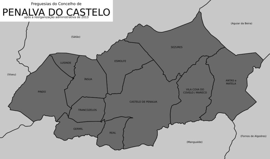 | Keywords: Penalva do Castelo freguesias 2013.svg  pt Freguesias do concelho de Penalva do Castelo Fontes Diário da República Reorganização administrativa do território das freguesias Lei n º 11-A/2013 de 28 de janeiro Direcção-Geral do Território Carta Administrativa Oficial de Portugal CAOP versão 2013 Continente http //www dgterritorio pt/ficheiros/cadastro/caop/caop_download/caop_2013_0/caop2013cont_zip_2 en Civil parishes in the municipality of Penalva do Castelo Portugal Sources Diário da República Administrative reorganization of the civil parishes' territory Law n 11-A/2013 from 28th January Direcção-Geral do Território Official Administrative Chart of Portugal CAOP version 2013 Mainland http //www dgterritorio pt/ficheiros/cadastro/caop/caop_download/caop_2013_0/caop2013cont_zip_2 2014-04-28 13 10 12 own Gazilion cc-zero Uploaded with UploadWizard Penalva do Castelo SVG maps of freguesias in Portugal |