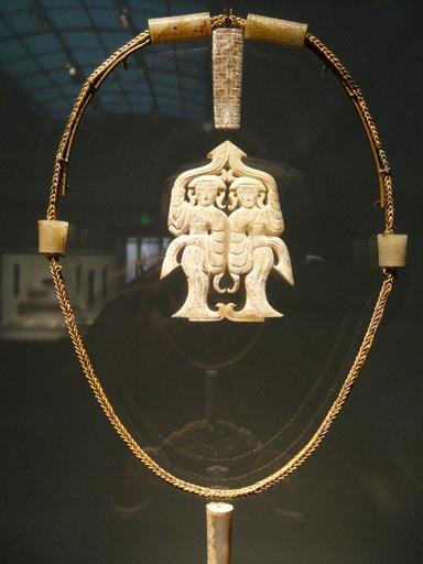 | Keywords: Pendants, beads, and gold chain, view 2, Jincun, central Henan, Warring States period, 475-221 BC, jade (nephrite) and gold - Freer Gallery of Art - DSC05760.JPG en Exhibit in the Freer Gallery of Art Washington DC USA This artwork is old enough so that it is in the public domain Photography was permitted in the museum without restriction 2013-02-12 16 23 10 own Daderot cc-zero Sculpture of China in the Freer Gallery Uploaded with UploadWizard Metalwork of the Warring States period | ||||