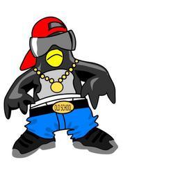 Keywords: penguin rapper sagging gold jewelry glasses danger power old school baggy pants aggressive cap red