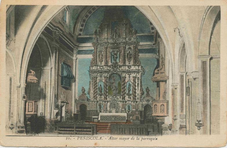 | Keywords: Peniscola altar mayor.jpeg fr Peñiscola - autel principal de l'église paroissiale vers 1930 disparu pendant la guerre es Peñiscola - altar mayor de la parroquia años 1930 antes de la guerra 2012-06-17 carte postale ancienne author PD-old-auto spain 1930 Uploaded with UploadWizard Church of Santa Maria Peniscola Altars in the Land of Valencia Peniscola Old postcards of the Land of Valencia 1930 postcards Images by User Fagairolles 34 | ||||