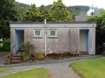 | Keywords: Pennyfuir toilets.jpg Pennyfuir Cemetery at highway A85 north of Oban <br> The Gentlemen and Ladies -signs show the logo Argyll Bute Council jpg Z 24 2016-07-11 own sarang 56 25 40 4 N 5 27 41 5 W Public toilets in Scotland Pennyfuir Cemetery |