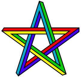 | Keywords: Penrose pentagram.svg Interlaced pentagram depicted as an impossible object or Penrose pentagram Self-made converted from a version of the following PostScript vector source <pre> 300 275 translate 3 dup scale 1 setlinejoin 1 setlinecap 8 75 setlinewidth 5 -370 305 -509 681 moveto 703 37 270 39 lineto stroke -905 973 346 099 moveto 936 378 346 099 lineto -410 108 -632 181 lineto stroke 936 378 346 099 moveto 936 378 252 519 lineto stroke 72 rotate repeat showpage EOF</pre> 2011 AnonMoos Pentagrams Penrose figures Images with PostScript source code |
