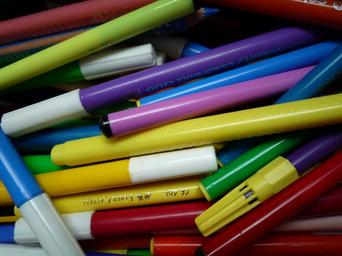 Keywords: pens colorful color crayons colour pencils mess close