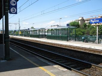 Keywords: Pensilina binario 4 vista dal binario 3.JPG Pensilina in acciaio e plexiglass del binario 4 Own 2009-06-12 Tr6637 Figline Valdarno train station