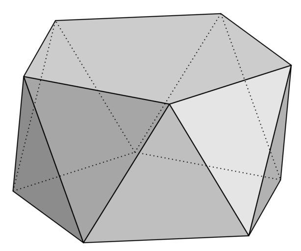 | Keywords: Pentagonal Antiprism (Dodecahedron).svg en A shaded wire-frame pentagonal antiprism This is a type of dodecahedron Created with GeoGebra 2013-11-08 16 35 13 own DEMcAdams cc-zero Uploaded with UploadWizard Set of polyhedra; simple gray Polyhedra with 12 faces Antiprisms |