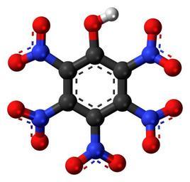| Keywords: Pentanitrophenol-3D-balls.png Ball-and-stick model of the pentanitrophenol molecule a nitro compound Colour code 505050 Carbon C black<br> F0F0F0 Hydrogen H white<br> F51E1E Oxygen O red<br> 3C50FA Nitrogen N blue<br> 2011-01-27 own DS Visualizer Jynto talk Space-filling version cc-zero Pentanitrophenol Images by Jynto |