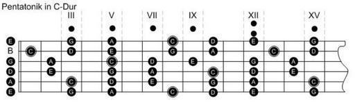 Keywords: Pentatonik in C-Dur.jpg Eigenanfertigung 2005-11-05 own assumed Red Rooster Scales on guitar
