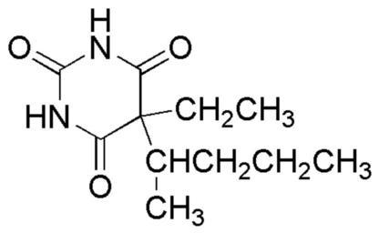 Keywords: Pentobarbital.png Selfmade with ChemDraw 2006-03-29 own assumed Calvero Pentobarbital_2d svg Pentobarbital