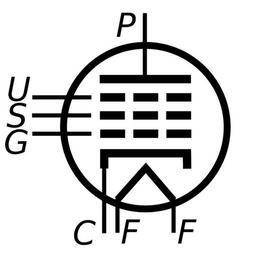 Keywords: Pentode symbol labeled.svg pentode vacuum tube F filament or heater C cathode G control grid S screen grid U suppressor grid P plate 2013-06-26 07 45 33 own Chetvorno cc-zero Uploaded with UploadWizard Vacuum tube symbols