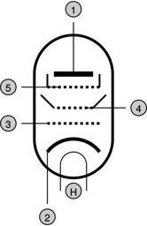 | Keywords: Pentode-Symbol.svg Symbol für eine Pentode 1 Anode 2 Kathode 3 Steuergitter<br> 4 Schirmgitter 5 Bremsgitter<br> H Kathodenheizung Autor Lars H Rohwedder de User RokerHRO Selbst erstellt mit Xfig Quelldatei unter de User RokerHRO/xfig/Pentode-Symbol fig Lizenz Gemeinfrei de German RokerHRO SVG vacuum tubes Electrodes Pentodes |