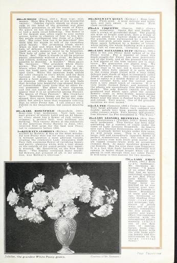 | Keywords: Peonies for pleasure (16208399768).jpg Lovely French- <br> white that is to say not a snow-white al- <br> though when fully opened it is quite white- <br> in the young stage tinted with a very fresh <br> delicate pale shade of what is commonly called <br> 'blush' or palest pink The central flower the <br> first to open is a double flower of rather flat- <br> tened circular form and the central petals <br> have a very small touch of carmine It is a <br> very nicely formed flower and scented and <br> the plants are exceedingly free flowering and <br> showy The side flowers which are freely <br> produced and which open after the central <br> flower come in semi-double saucer-shaped <br> form exposing the anthers The back of the <br> flower near the stem is flushed with pink Tall <br> and robust Very scarce One of the grandest <br> varieties we ever raised <br> 112 LA FEE Lemoine 1906 Crown type; early <br> Very large globular flower very compact and <br> double; petals very long guards mauve-rose <br> collar creamy-white Very strong tall grower- <br> free bloomer La Fee translated is The Fairy <br> 28 LADY LEONORA BRAMVVELL Syn Doc- <br> teur Bretonneau Verdier 1854 Bomb type- <br> early midseason This Doctor has been mas- <br> querading for a number of years under the <br> name of Lady Leonora Bramwell As Guerin <br> sent out a Docteur Bretonneau and as this va- <br> riety is already better known under this name <br> we will retain same This is a charming <br> large full and exceedingly fragrant flower of <br> perfect symmetrical form The color is del- <br> icate silvery-rose with lively pink center; pet- <br> als tipped creamy-white with an occasional <br> crimson fleck In many localities grown for <br> cut flowers Has the true June rose fragrance <br> It is a fact that Lady Leonora Bramwell will <br> remain in better shape longer when cut and <br> placed in cold storage than any other Peony <br> It will keep in this manner for two months <br> 776 LADY EMILY <br> Pleas 1907 Rose <br> type; midseason <br> Mr Germann de- <br> scribes 'I know <br> of no other Peony <br> that has so many <br> individual qualities <br> as has Mrs Pleas' <br> Lady Emily ' was <br> the comment one <br> Peony lover re- <br> marked as he was <br> looking over hun- <br> dreds of Peonies in <br> bloom Sturdiness <br> of stem and foli- <br> age loveliness of <br> color shading from <br> ivory -rose- pink <br> and primrose; sub- <br> stance of petals <br> waxy and of good <br> quality resembling <br> the Iris petals in <br> quality and waved <br> effect; the combined <br> coloring with its <br> interspersed golden <br> stamens remind <br> one of the first <br> tints of sunrise <br> Large loose cup- <br> shaped flower with <br> the side buds add- <br> ing beauty and dis- <br> tinctiveness to the <br> large central <br> flower <br> Jubilee the grandest White Peony grown <br> Page Twenty-one <br> Courtesy of Mr Germann 41910026 131358 64860 Page 21 Text http //www biodiversitylibrary org/page/41910026 1917 10 1080/00222939009460791 Ella V Baines Firm ; Henry G Gilbert Nursery and Seed Trade Catalog Collection NameFound Lemoine NameConfirmed Lemoine NameBankID 4964481 Biodiversity Heritage Library Miss Ella V Baines the woman florist Springfield Ohio Peonies for pleasure Garden Stories Bulbs Plants Catalogs Flowers Peonies Plants Ornamental Seed industry and trade Seeds Trade catalogs U S Department of Agriculture National Agricultural Library bhl page 41910026 dc identifier http //biodiversitylibrary org/page/41910026 bhlGardenStories BHLinbloom bulbs plants plants ornamental u s department of agriculture national agricultural library bhlgardenstories bhlinbloom Information field Flickr posted date ISOdate 2015-01-29 CC-BY-2 0 BioDivLibrary https //flickr com/photos/61021753 N02/16208399768 2015-08-25 01 52 05 cc-by-2 0 PD-old-70-1923 Peonies for pleasure Photos uploaded from Flickr by FĂŚ using a script |