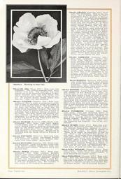 | Keywords: Peonies for pleasure (16370055436).jpg Albi flora Nothing to beat this <br> 785 ” LADY IRIS Pleas 1907 Rose type; late <br> midseason The cleanest possible color; 'white <br> suffused with lake The shadings and color <br> remind one of the beautiful Iris Queen of May; <br> dainty lavender pink; has long broad rich <br> silky petals growing smaller towards the cen- <br> ter No prettier loosely double flower than <br> this one Color rare and beautiful <br> 190 ” LA FAYETTE Dessert 1904 Rose type; <br> midseason This is really so gorgeous a variety <br> that a page in this book would not suffice to <br> tell of its wondrous beauty The flowers last <br> for fully two weeks are of giant size the <br> petals being beautifully fringed The color is <br> a lovely shade of salmon-pink with touches of <br> heliotrope and a delicate tinting of cerise in <br> the reflex The most unique and entirely dis- <br> tinct coloring yet shown in a Peony flower <br> Absolutely in a class by itself in this respect <br> La Payette has set a high water mark that we <br> believe will stand for years <br> 199 ” LA FIANCEE Lemoine 189S Crown type; <br> midseason Very large high built flower <br> creamy-white base of petals shaded yellow <br> center flecked crimson showing stamens that <br> light up the flower until it fairly entrances <br> with its golden glow; very floriferous Per- <br> fume delicate yet penetrating Should not be <br> confused with the single white La Fiancee of <br> Dessert <br> 216 ” LA FONTAINE Dessert Semi-rose type; <br> midseason Very large cup-shaped flowers <br> with prominent stamens; very brilliant ama- <br> ranth with silver reflex Extra good <br> 214 ” LA FONTAINE Lemoine 1904 Bomb type; <br> late midseason Large and double violet-rose; <br> collar lighter; primary petals very wide; cen- <br> ter flecked with crimson Fragrant and a very <br> delicate color <br> 159 ” LA PERLE Crousse 1885 Rose type; <br> midseason Very large compact globular <br> flowers; color white overlaid with lilac with a <br> blush center; central petals noticeably flecked <br> with carmine sometimes splashed; upright <br> grower; free bloomer in clusters; extra fine <br> If you desire a real pretty Peony try this one; <br> it will not disappoint you We consider it <br> very nearly at the head of the procession <br> 144 ” LA FRANCE Lemoine 1901 Rose <br> type; late midseason This is the one <br> Peony that is sought after bv even- <br> progressive Peony grower in Europe <br> and America It stands pre-eminentlv <br> in a class by itself When M Lemoine <br> produced this Peony he eclipsed every- <br> thing that had preceded it It bears <br> enormously large full rather flat per- <br> fectly double flowers that are deli- <br> ciously fragrant Color La France- <br> pink as the flower ages finishing soft <br> apple blossom-pink reflecting mauve <br> The outer guard petals have a splash <br> of crimson through the center deepen- <br> ing at the base The flower appears to <br> light up and glow; simply wonderful; <br> nothing in its color; nothing in its <br> class An extremely free bloomer as <br> eight out of every ten small divisions <br> – will flower Extra strong grower with <br> long stems A glorious flower The <br> stock of this Peony is very limited <br> and much of it is diseased We are <br> often asked if our stock is clean The <br> best answer to this is that the past <br> June we had three-year plants that <br> averaged 30 big perfect blooms to the <br> plant Never mind about the disease <br> if you can get bloom like that <br> 147 ” LA LORRAINE Lemoine 1901 <br> Rose type; midseason Another fine <br> Peony from Lemoine bearing enor- <br> mous globular flowers; color creamy- <br> white overlaid with the daintiest pret- <br> tiest soft pink ever seen in any flower <br> sometimes it shows just a touch of <br> salmon-pink The petals are extreme- <br> ly large This is a great keeper no <br> Peony flower lasting so long This is <br> in every way a fit companion to La <br> France Another varietv that most <br> growers have diseased Until this year <br> our stock of this grand Peonv was af- <br> fected <br> 60 ” LAMARTINE Lemoine 1908 Rose <br> type; midseason Grand large flowers <br> with broad imbricated petals of great <br> durability; color rosy-carmine bor- <br> dered silvery white; extra good; a very <br> attractive and striking Peony <br> 149 ” LA ROSIERE Crousse 1888 Semi-double <br> type; midseason Large flowers in huge clus- <br> ters usually of five flowers on a stem; all <br> flowers open at one and the same time; thus <br> a single stem makes a huge bouquet in itself <br> The flowers consist of several rows of large <br> pure white petals the center of the flower be- <br> ing a large disc of golden-yellow stamens re- <br> sembling a huge chalice of molten gold The <br> effect of the white and gold in such handsome <br> form is both startling and entrancing In form <br> and effect resembles an enormous tea rose <br> Every woman who sees it immediately desires <br> to possess it <br> 208 ” LA TENDRESSE Crousse 1896 Rose <br> type; early Very full spreading flower of <br> immense size in clusters; petals very thick and <br> wax-like Color creamy-white changing to <br> pure white; guards slightly splashed center <br> flecked crimson Flecks are very prominent <br> on some blooms very slight on others; very <br> free flowering and fragrant One of the very <br> choicest <br> 103 ” LA TULIPE Calot 1872 Semi-rose type; <br> midseason Enormous globular fragrant flow- <br> ers delicate blush-white shading to ivory- <br> white with red tulip markings on outside of <br> guard petals Again -we quote Harrison <br> There is no Peony so attractive in bud as <br> this First a ball interlaced with green red <br> and white As it grows these interlacings be- <br> come pronounced There is no bloom whose <br> unfoldings you watch -with greater interest <br> It finally opens a solid ball of