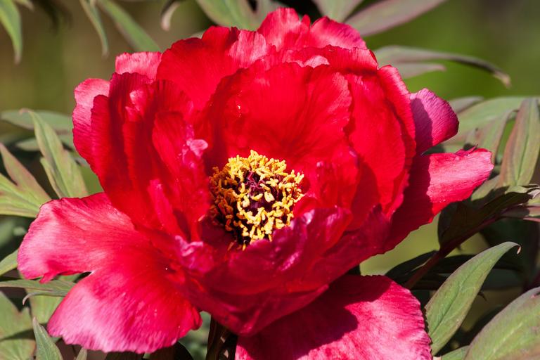 Keywords: peony flower nature flora spring blossom bloom ornamental plant red green double flower lush