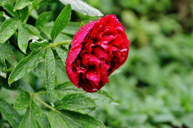 Keywords: peony rain drip raindrop nature macro beaded drop of water plant