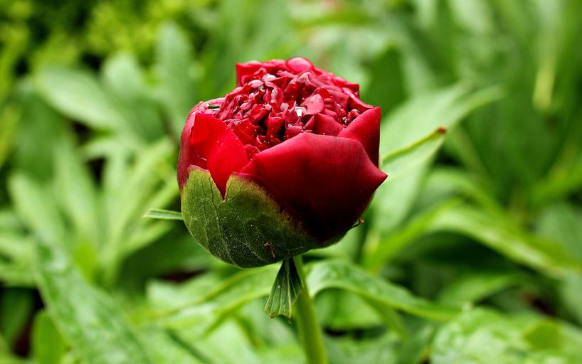 Keywords: peony red blossom bloom flower spring flora garden nature pentecost flower garden drop of water bloom may