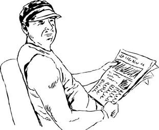 Keywords: people man men male adult person caucasian line drawing sketch read reading newspaper