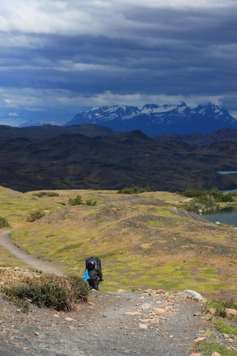Keywords: chile paine hiking america park national hiker autumn sunrise torres south trekking lake cuernos people sun girl patagonia wilderness blue panorama mountain beauty towers rural outdoors andes extreme del scene