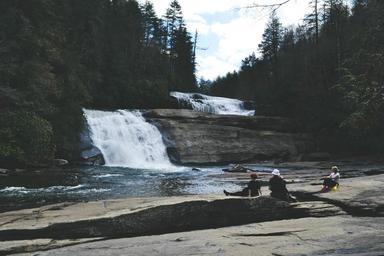 Keywords: people waterfall outdoors water flowing person family landscape woman man scenic stream nature relaxing leisure calm peaceful