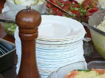 Keywords: pepper mill mill grind tableware plate salad buffet table cover board eat